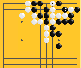 黒1のオキが鋭い手で、攻め合い勝ちになります。