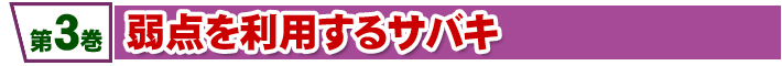 第1局. 捨石を活用して楽にサバく 第2局. 軽快にサバくテクニック 第3局. 模様を荒らす一連の手段 第4局. 狙いを秘めたサバキの急所 第5局. 踏み込んで大きく荒らす 第6局. 大ゲイマジマリを荒らす急所?@ 第7局. 大ゲイマジマリを荒らす急所?A 第8局. 一間ジマリを荒らす急所?@ 第9局. 一間ジマリを荒らす急所?A |